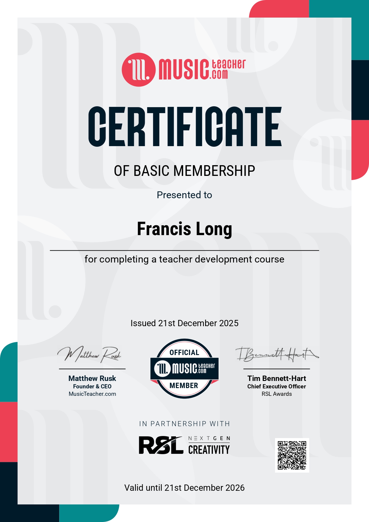 Francis Long dipABRSM, LTCL
